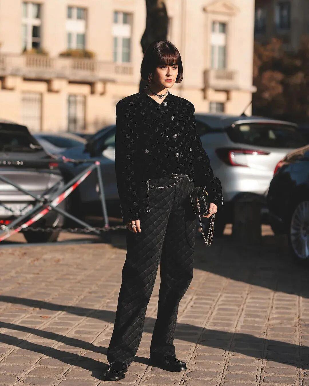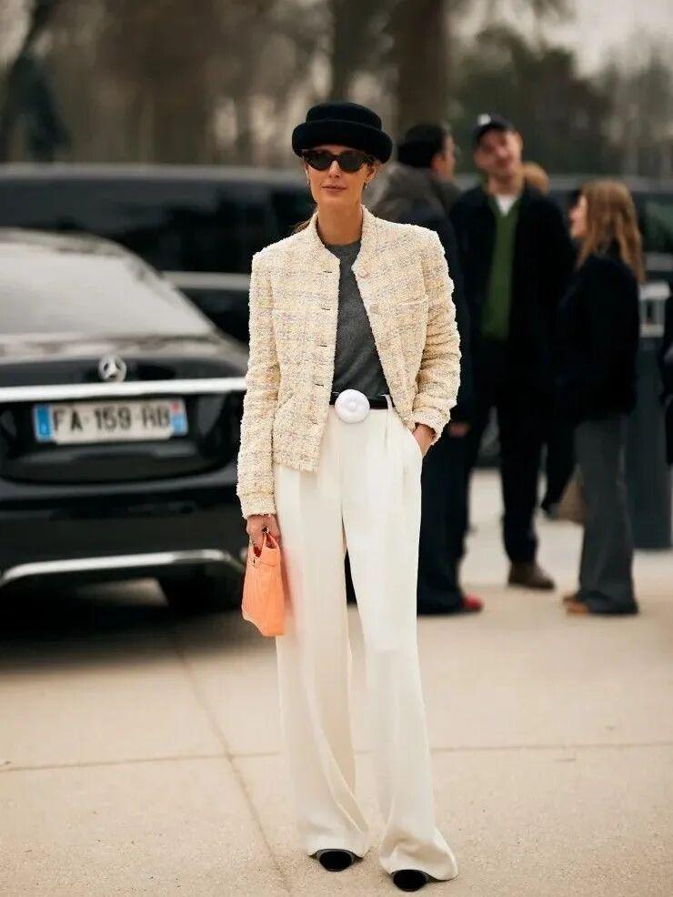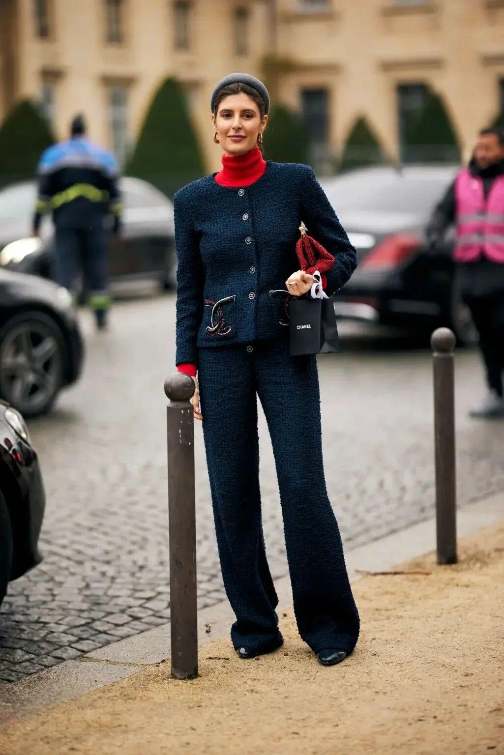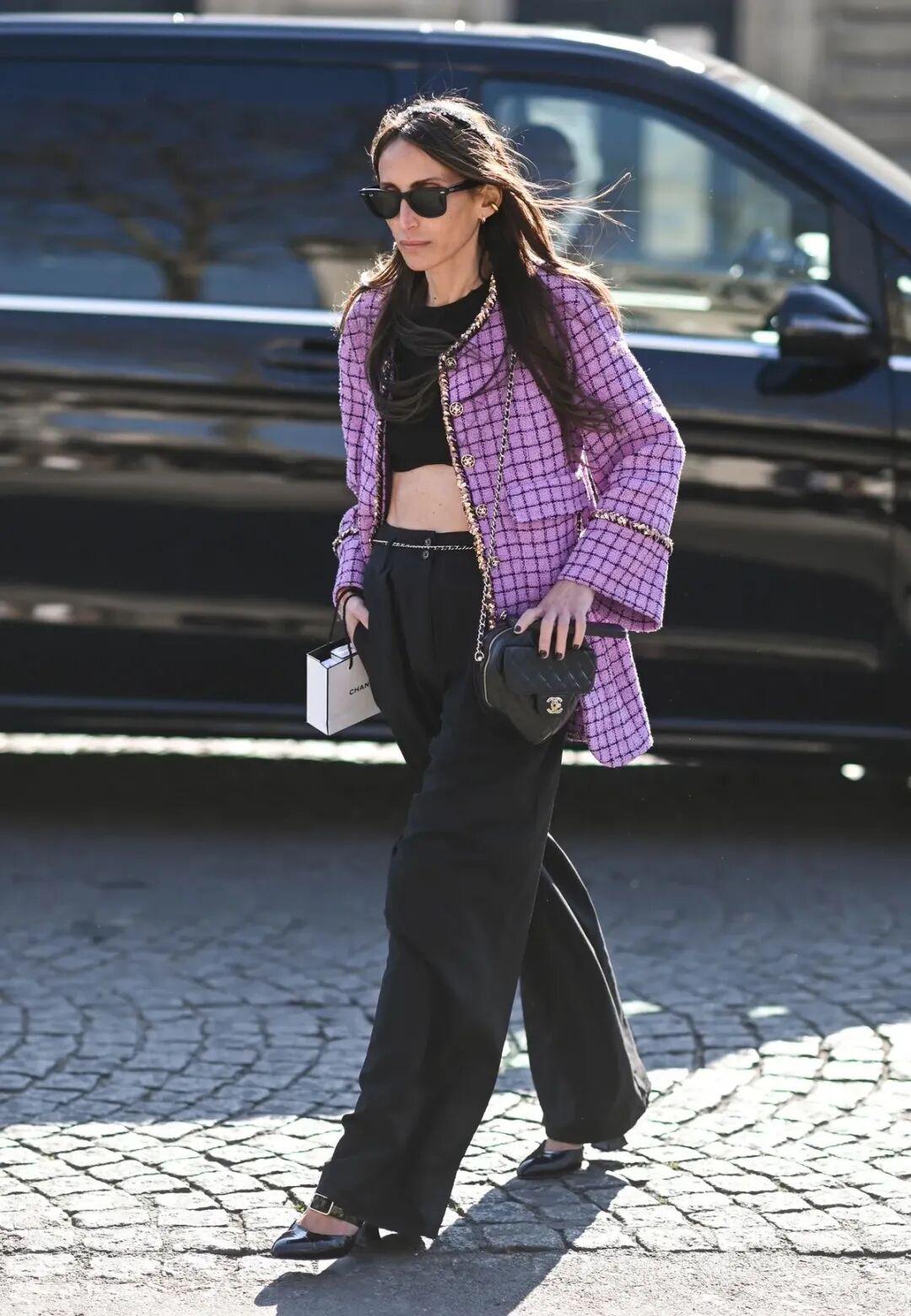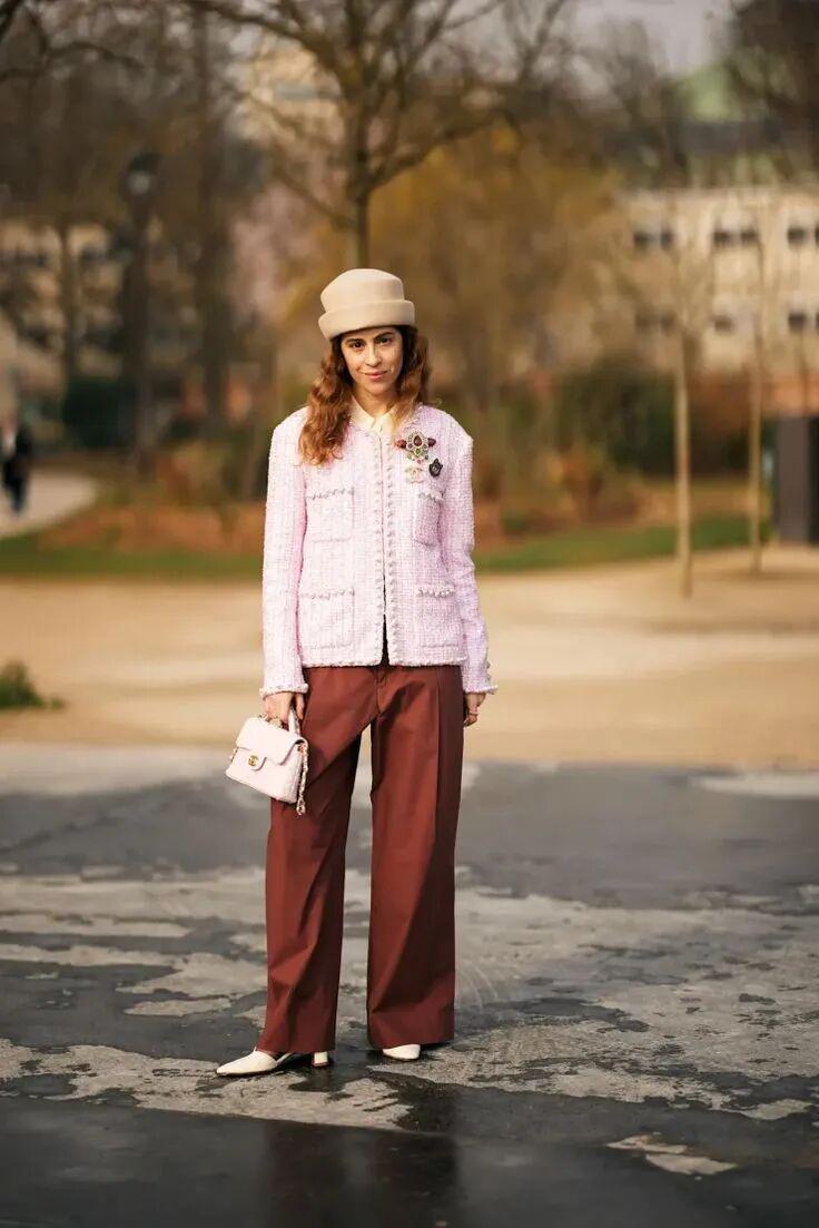 当小香风外套遇到西装阔腿裤,风格就进入了更理性的维度。