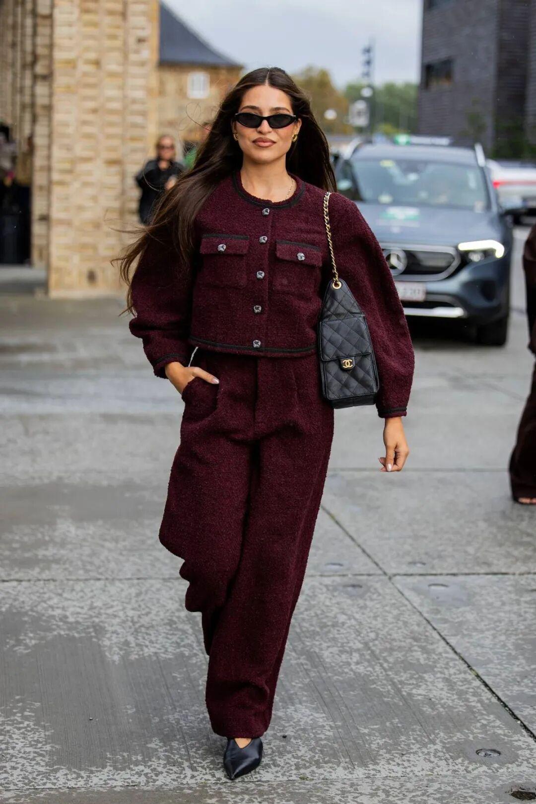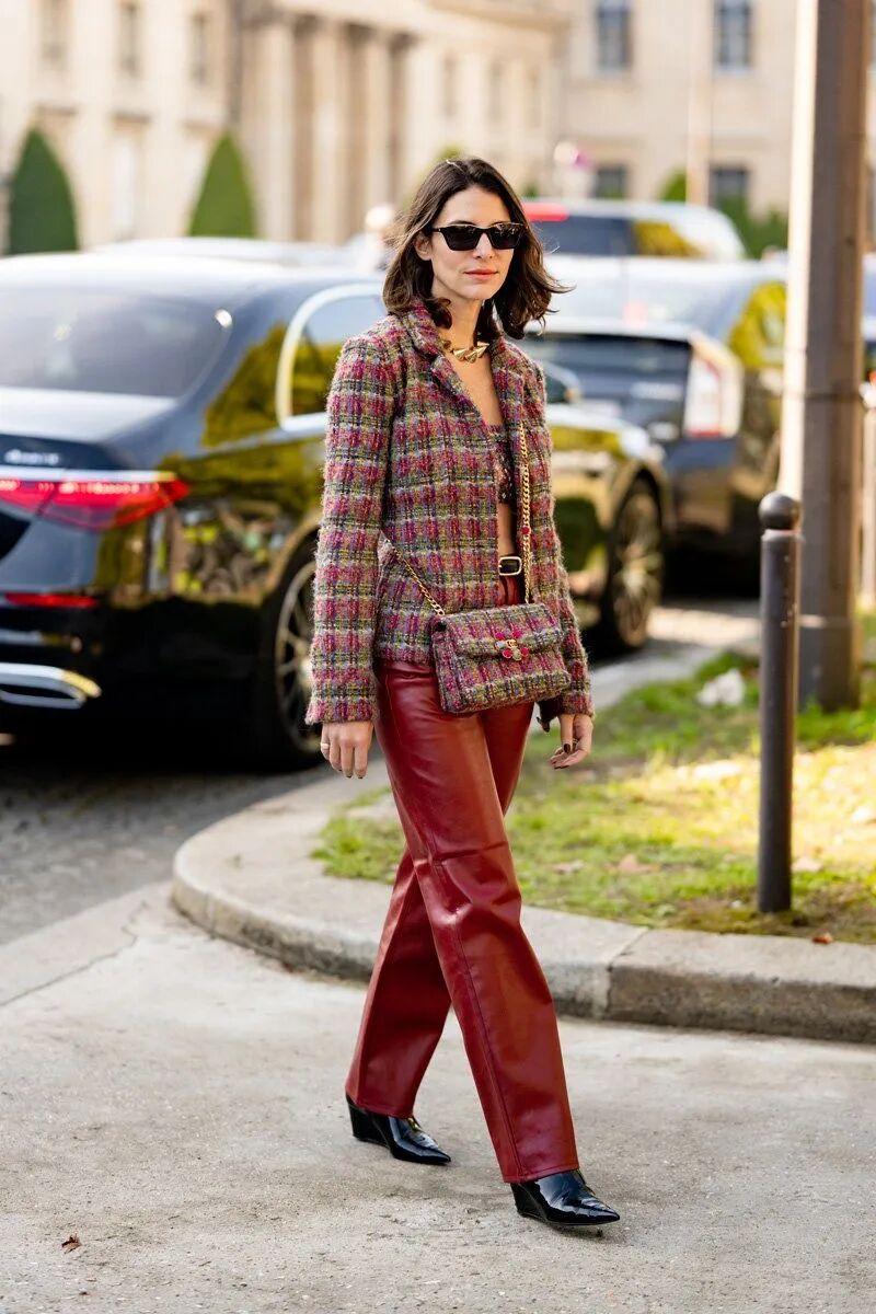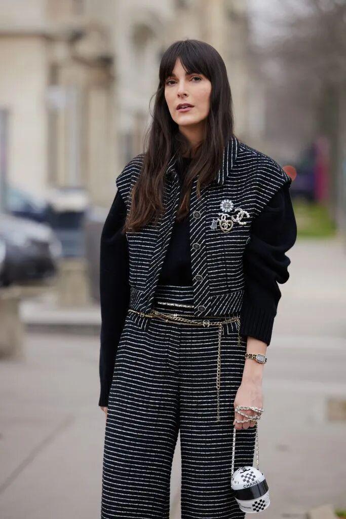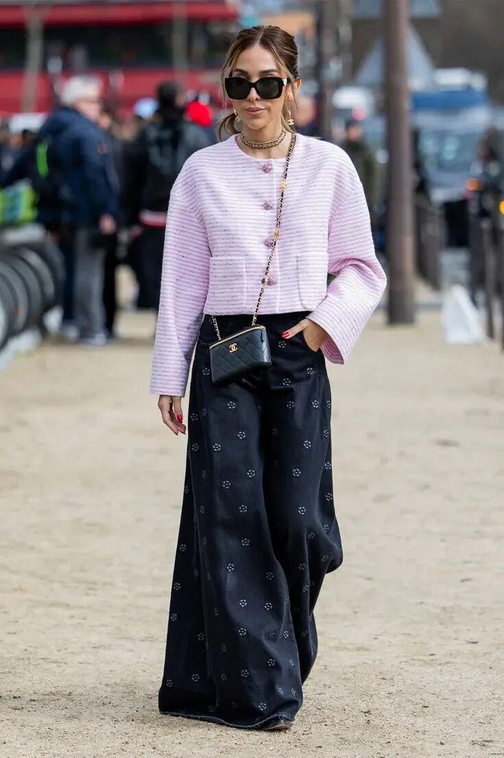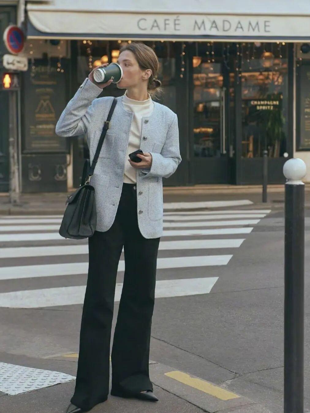 当小香风外套遇到西装阔腿裤,风格就进入了更理性的维度。