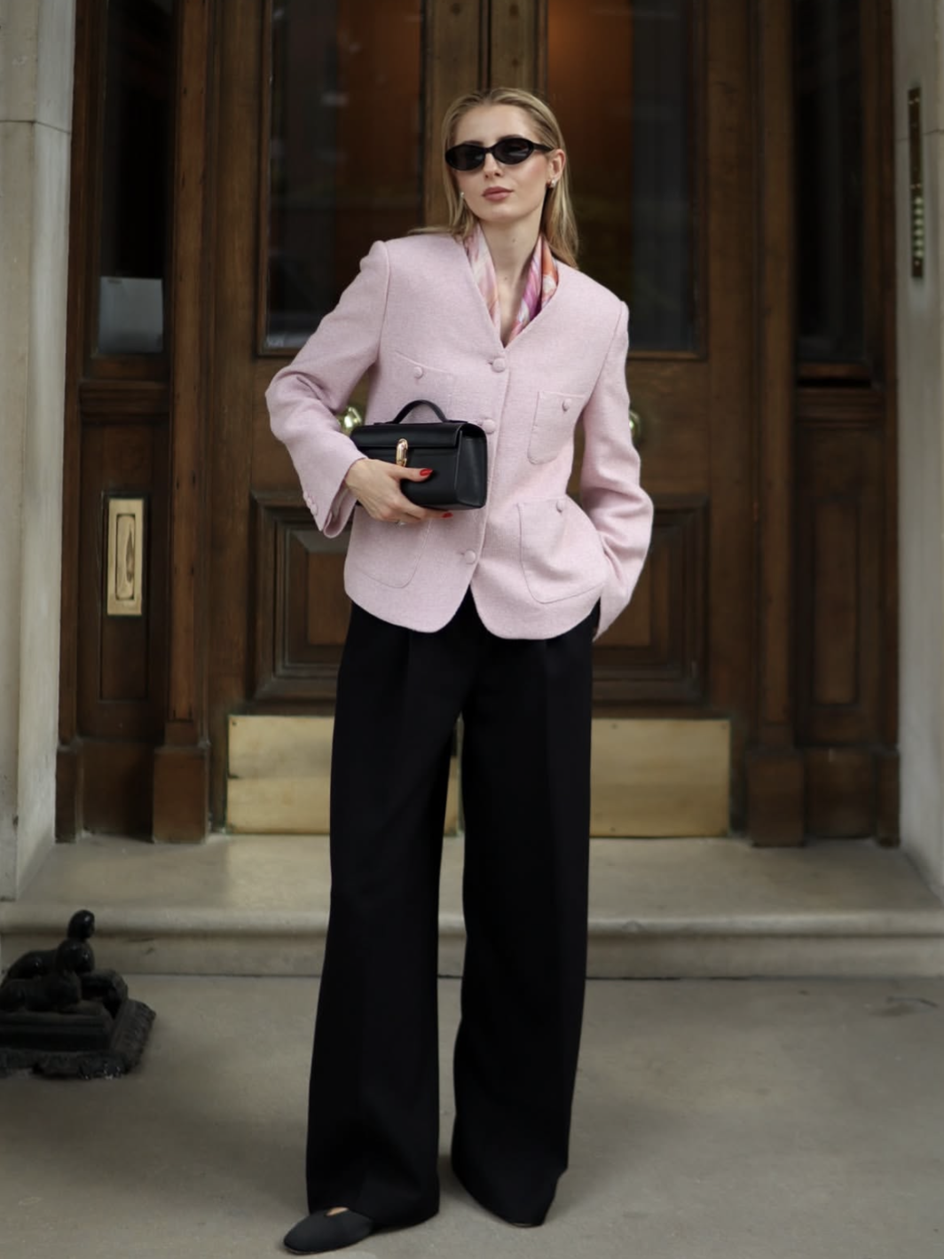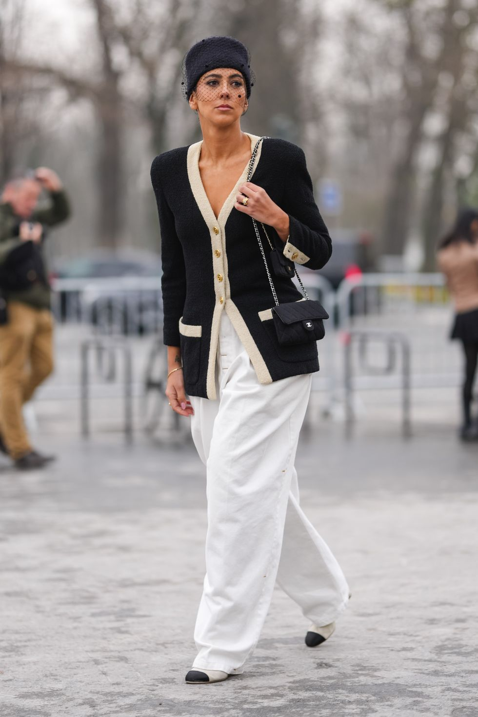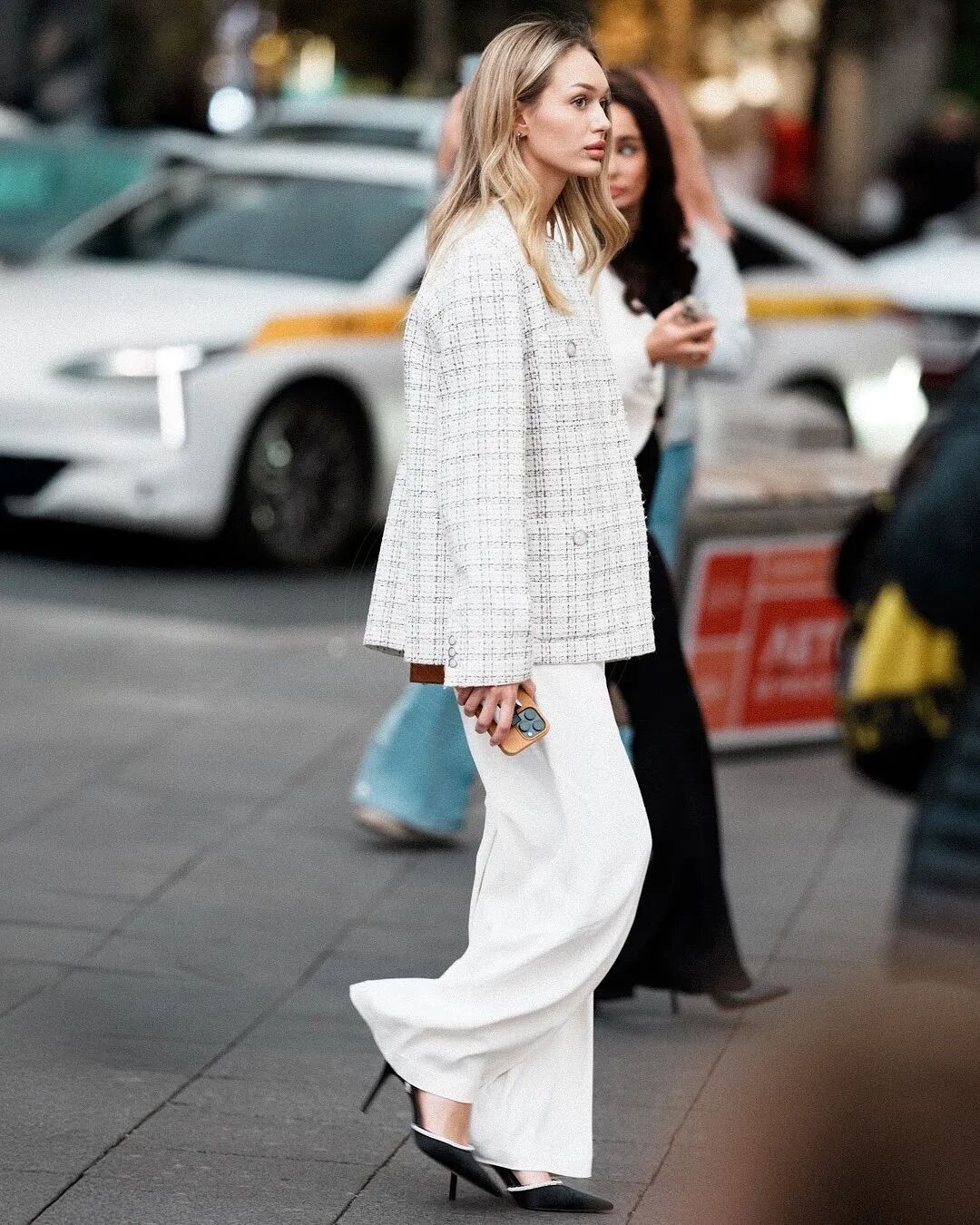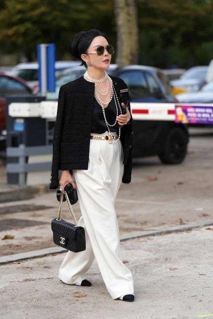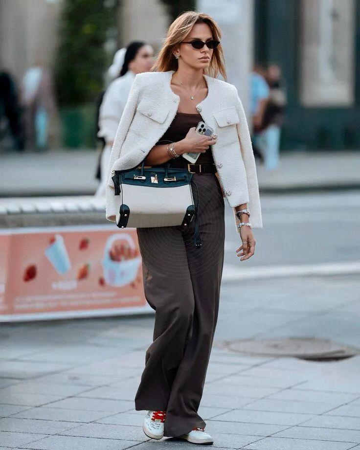 当小香风外套遇到西装阔腿裤,风格就进入了更理性的维度。