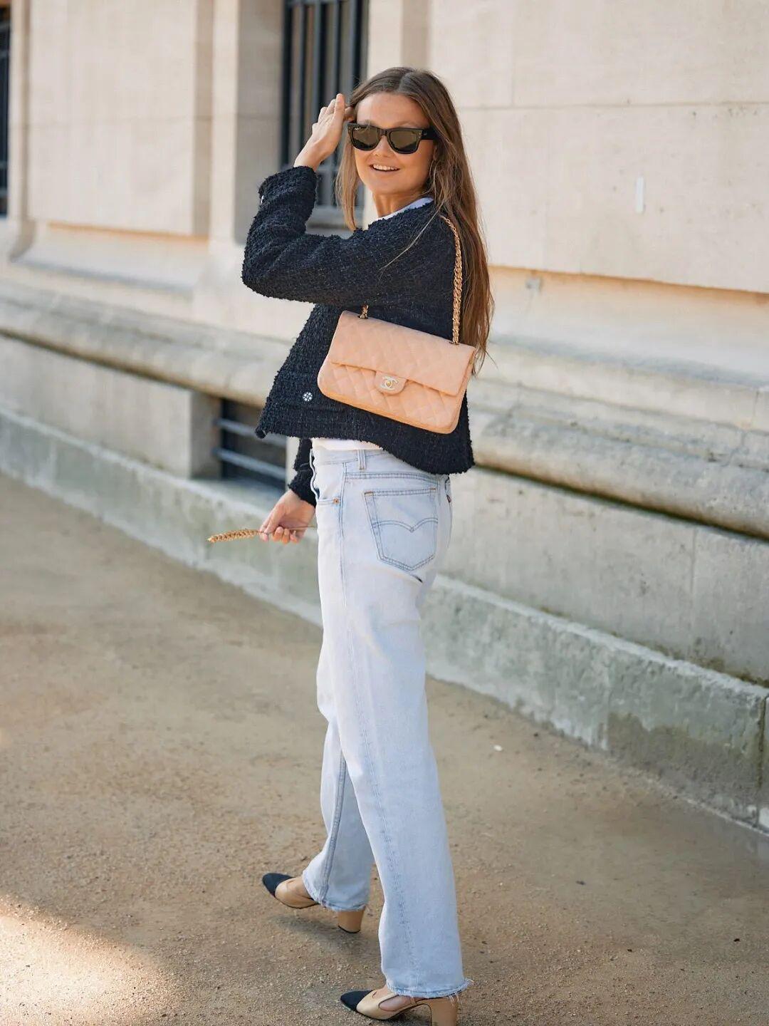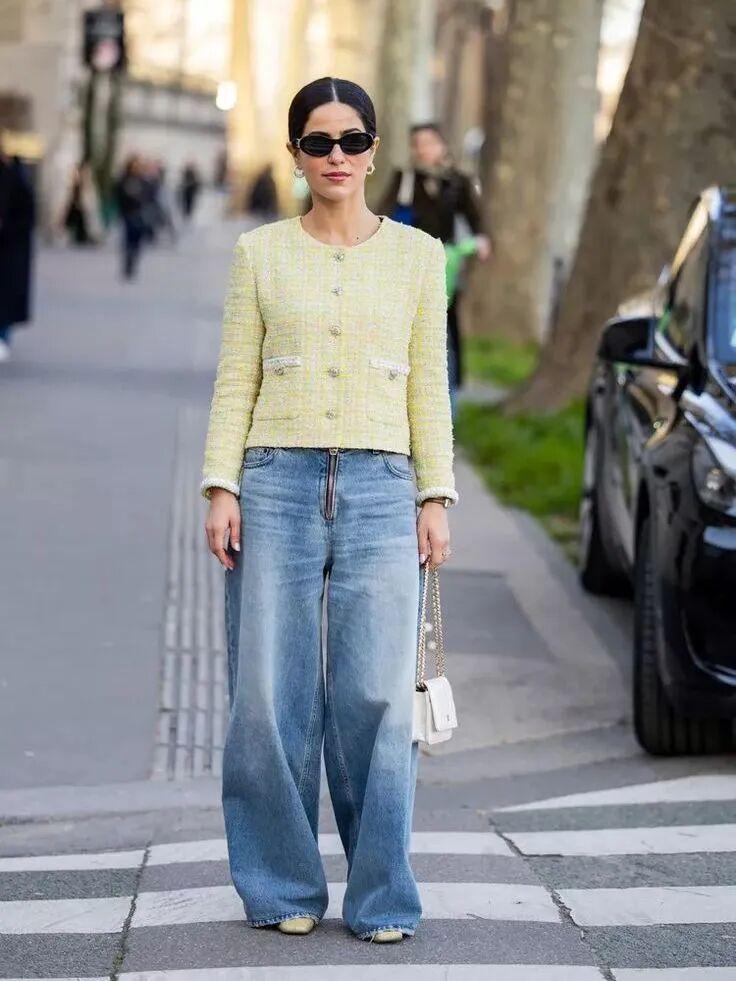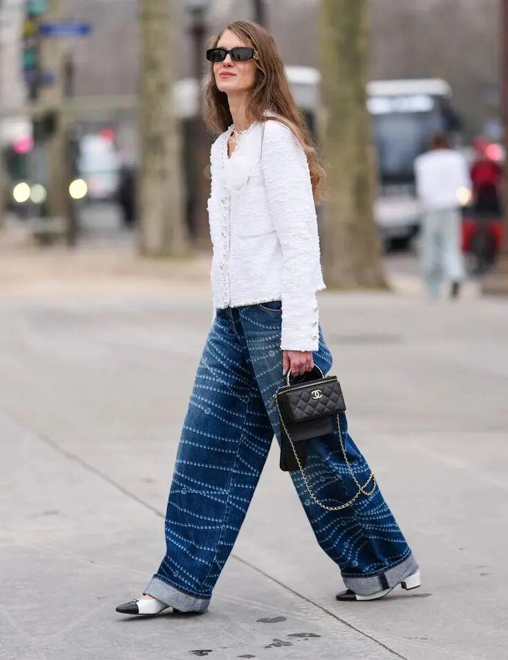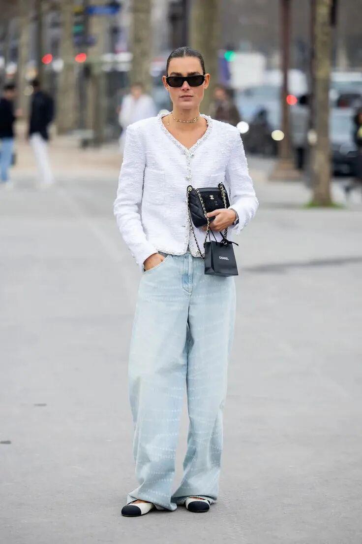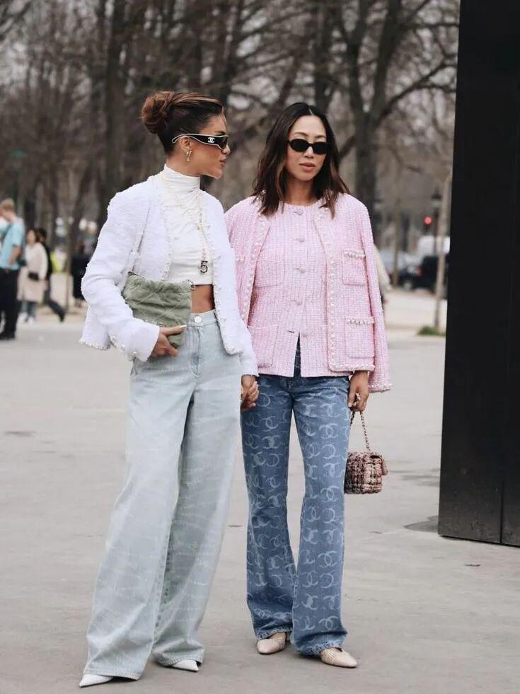 另一方面,牛仔裤激发出小香风外套自由叛逆的内核,小香风外套则让牛仔阔腿裤多了几分精致味道。